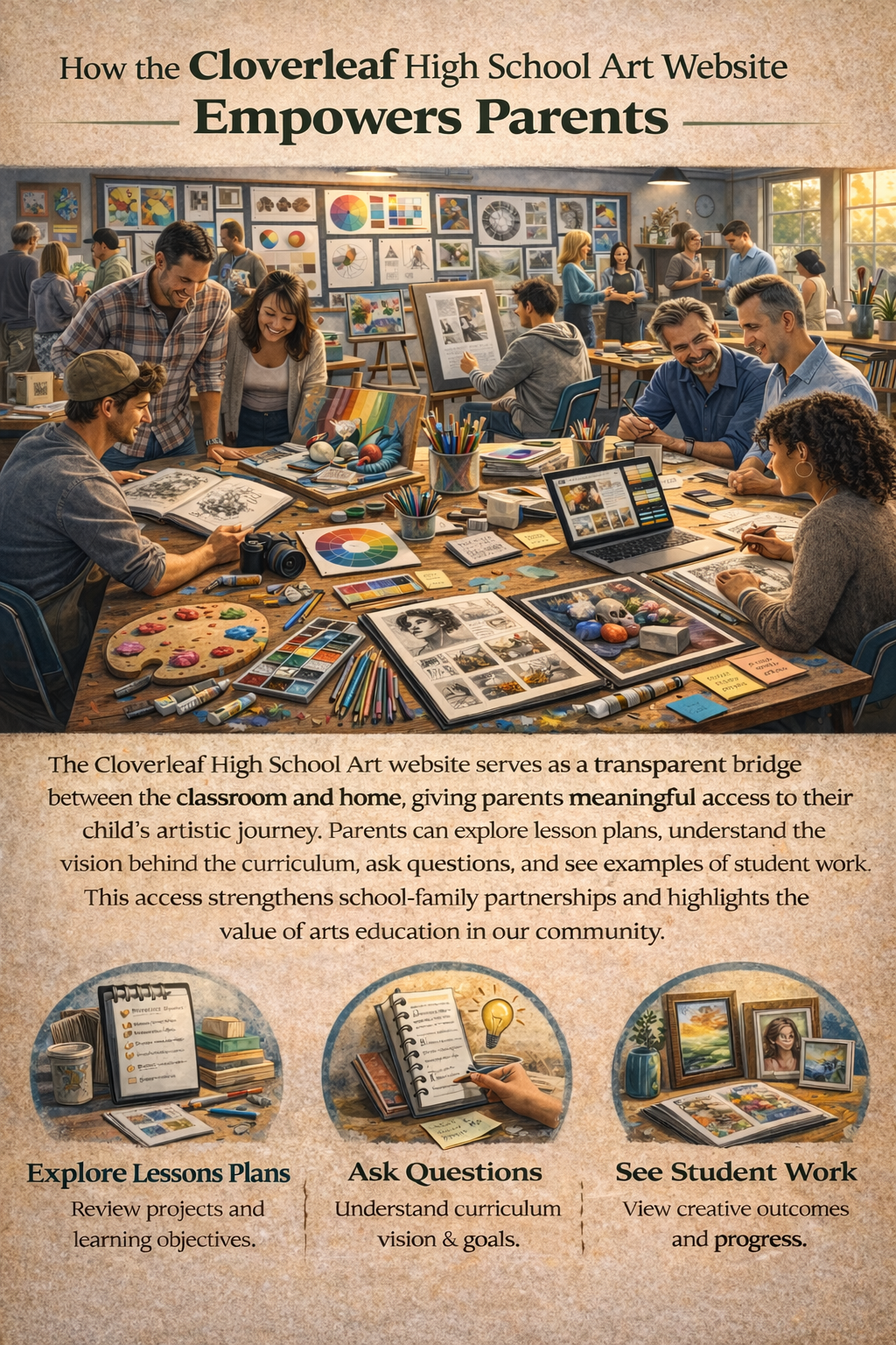 Welcome to a rigorous and rewarding creative experience designed to challenge, refine, and elevate your artistic practice. The Advanced Art program at Cloverleaf High School is more than a class—it is an immersive studio environment where discipline meets imagination and creativity is cultivated with intention. High school is a pivotal time for artistic growth. In this program, you will strengthen your technical abilities, deepen your conceptual thinking, and begin shaping a cohesive body of work that reflects both your voice and your vision.
