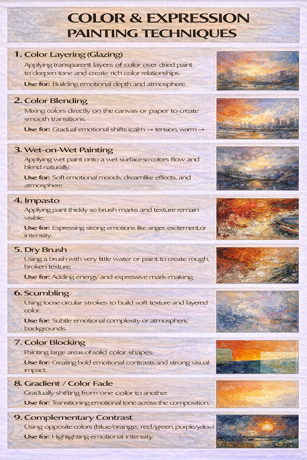 * Use brushwork and texture intentionally to support expressive goals.
