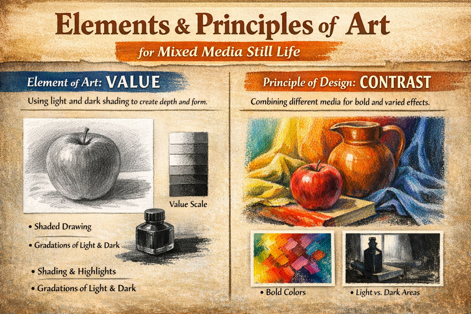 * Demonstrate proportional relationships and spatial awareness in a still life composition.